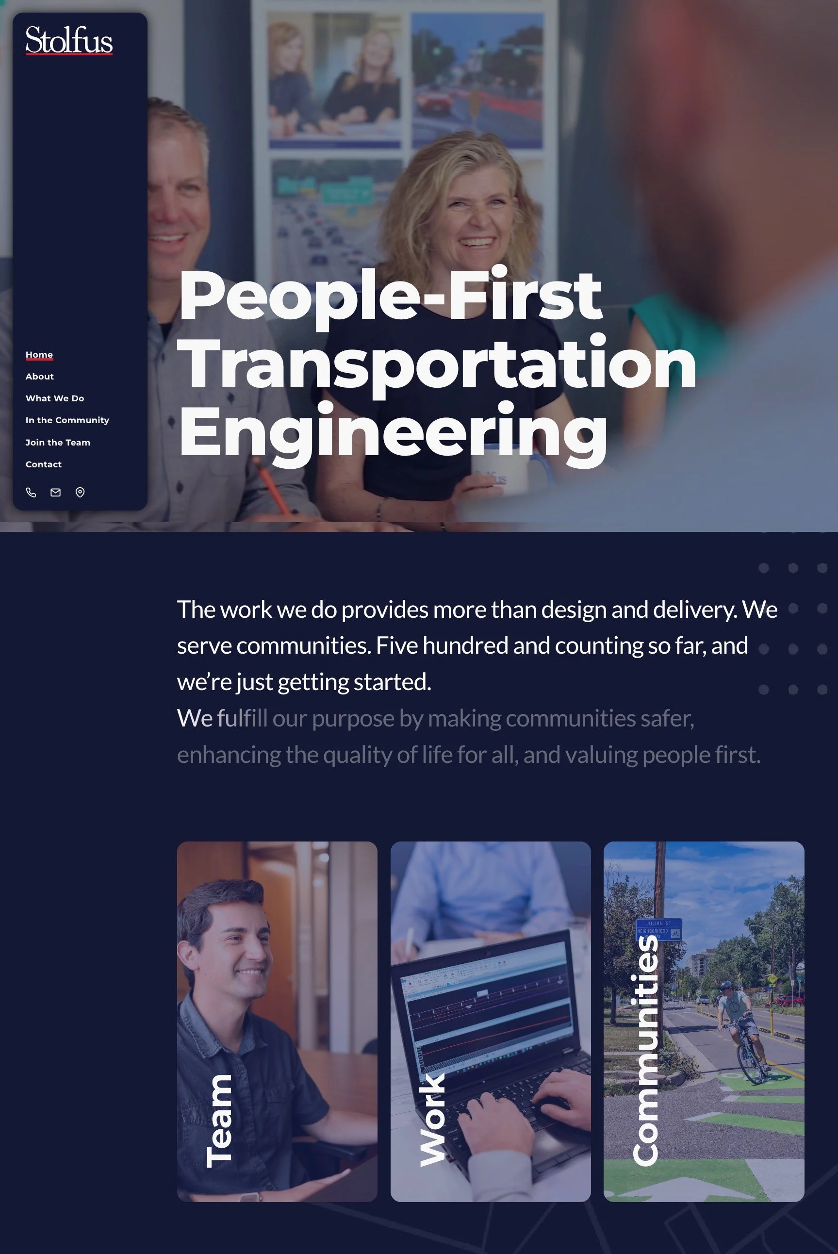Stolfus and Associates is a dynamic engineering firm that goes above and beyond in building communities through transportation infrastructure. For their new website, we went big and bold on the content strategy and design to put their key differentiator – their people – front and center.